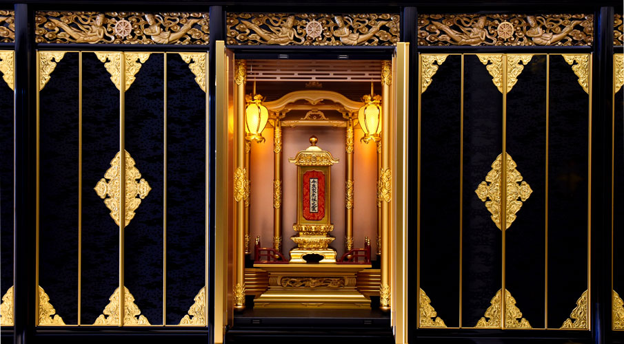 一本型の仏壇タイプとなっており、上品な蓮をあしらった位牌段の下に最大15名のお骨を収蔵できます。 位牌段には観音扉がついていますので、ご家族だけの空間にお手紙やお写真などを飾ることができます。 継承者がいなくなっても、阿弥陀如来像の胎内に納骨し永代に渡りご供養いたします。改葬をご検討されている方は、割引もございます。